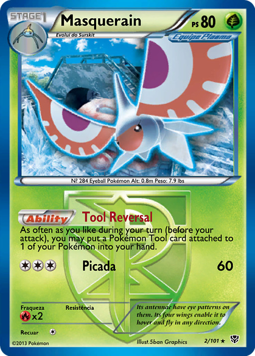 Todas las veces que quieras durante tu turno (antes de tu ataque), puedes poner una carta de Herramienta Pokémon unida a 1 de tus Pokémon en tu mano.
