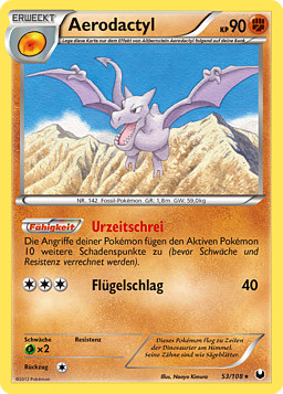 Mira las 7 últimas cartas de tu baraja. Puedes enseñar 1 Aerodactyl que encuentres entre ellas y ponerlo en tu Banca. Pon el resto de cartas de nuevo en tu baraja y barájalas todas.