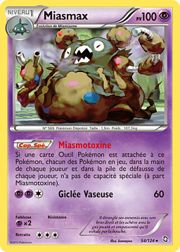 Si este Pokémon tiene una carta de Herramienta Pokémon unida a él, los Pokémon en juego, en la mano de cada jugador y en la pila de descartes de cada jugador no tienen ninguna habilidad (excepto Garbotoxina).