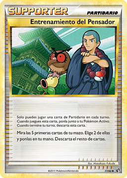 Revela las 10 primeras cartas de tu mazo. Si revelas las dos mitades de un Pokémon LEYENDA, pon esas cartas en tu Banca y une a ese Pokémon LEYENDA todas las cartas de Energía reveladas. Baraja el resto de cartas de nuevo en tu mazo. (Solo puedes jugar 1 Pokémon LEYENDA de esta manera.)