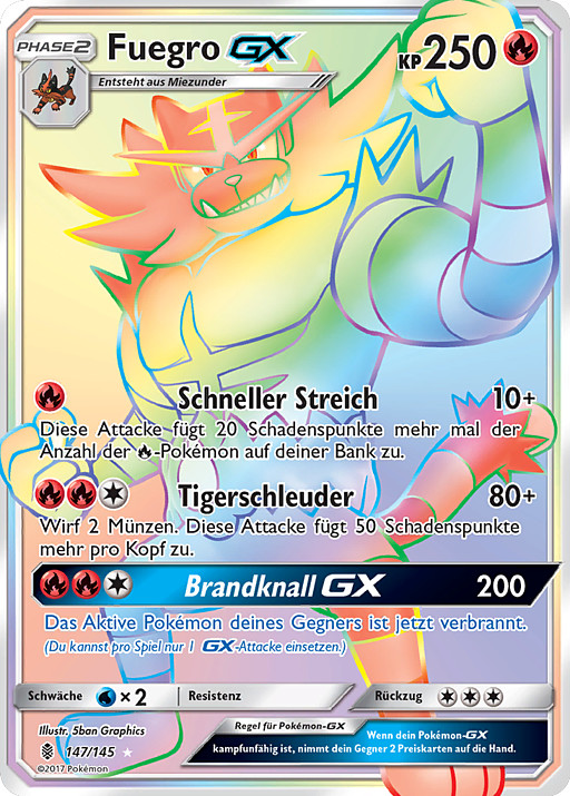 Pokémon en Fase 2 (250 HP) -Impacto Vigoroso 10+ -Golpe Tigre 80+ -Sacudida Ardiente GX 200