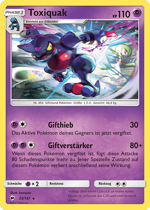 Si este Pokémon está Envenenado, este ataque hace 80 puntos de daño más. Después, elimina esa Condición Especial de este Pokémon.