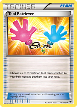 Elige hasta 2 cartas de Herramienta Pokémon unidas a tus Pokémon y ponlas en tu mano.