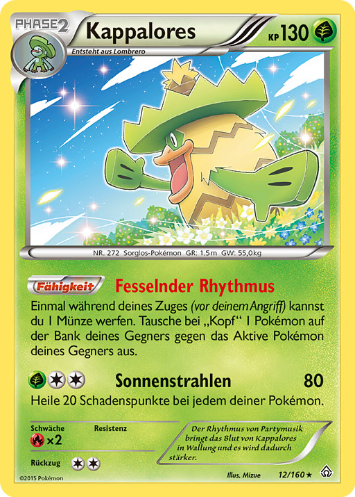 Una vez durante tu turno (antes de tu ataque), puedes lanzar 1 moneda. Si sale cara, cambia 1 de los Pokémon en Banca de tu rival por su Pokémon Activo.