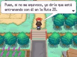En la entrada a la Ruta 19, la señora de la primera imagen te entregará una Poción. Sigue hacia adelante y te encontrarás con Bel, quien te mostrará cómo se captura un Pokémon. Tras eso, sigue hacia la derecha.