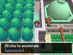 Ya en el puerto, Hiedra se marchará y podrás ir en barco a Ciudad Porcelana. Sin embargo, ve primero al Complejo Industrial por la izquierda y, usando Corte, podrás conseguir una Superpoción. Ya no queda más por hacer en la ciudad, así que entra en el edificio de laprimera imagen y habla con tu rival para ir a Ciudad Porcelana.