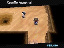 Ve ahora al interior de las ruinas de la Zona Desierto usando las escaleras de la primera imagen. Dentro podrás apreciar unos hoyos, en los cuales caerás si vas corriendo o caminas hacia su centro, así que camina sobre ellos con tranquilidad. Tras bajar las escaleras de la tercera imagen llegarás hasta la MT39 Tumba Rocas.