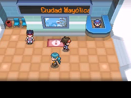 Al entrar en Ciudad Mayólica verás a los jefes del Metro Fero y Caril, junto al protagonista del género contrario al tuyo, quien te pedirá un combate doble contra ellos. Cuando hayas terminado, el otro protagonista te entregará la Cámara Lucha. En el Centro Pokémon de la ciudad podrás comprar la MT73 Onda Trueno, MT74 Giro Bola, MT16 Pantalla Luz y laMT33 Reflejo. Ahora ve a las casas que hay a la izquierda de la ciudad, concretamente en la que se sitúa detrás del Centro Pokémon, pues en ella te darán una Piedra Solar.