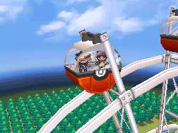 Vuelve ahora a Ciudad Mayólica y dirígete al Parque de Atracciones que hayen ella. Al entrar en él, baja un poco y encontrarás un antiguo Videomisor. Tras ello, habla con la chica que está en la entrada de la noria, quien te retará a un combate y luego subirá contigo en ella. A la derecha del muñeco gigante de Audino encontrarás además un Antiparaliz.