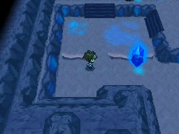 El camino estará ahora bloqueado por los dos cristales de la primera imagen. Golpea el primero por la derecha, y el siguiente desde arriba, para poder seguir hacia abajo. Ahora verás un puente a tu derecha. Atraviésalo y oirás a Bel, tras lo cual te encontrarás con más entrenadores y con las escaleras para bajar al siguiente piso. Antes de bajar, ve un poco a la izquierda y encontrarás un Imán.