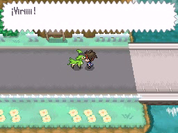 La Ruta 11 es otra parte más de estos juegos que te resultará relativamente corta, pues tan sólo te encontrarás en ella a dos entrenadores dispuestos a combatir contigo. Una vez los derrotes, entra en la caravana de la segunda imagen y habla con la Ranger para recibir una C. Favoritos. Tras eso, continúa a la izquierda y verás aparecer al Pokémon legendario Virizion. Guarda la partida y enfréntate a él para capturarlo.