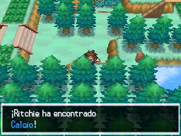 Sigue ahora más abajo y podrás encontrarte una Flecha Ven., tras lo cual tendrás que ir arriba, subir por la madera y usar Surf por el agua de la segunda imagen para llegar hasta el Calcio. Tras eso, continúa por la parte izquierda de la ruta para encontrarte a más entrenadores y conseguir además una Parte Roja. También puedes conseguir una Máx. Poción si subes por la madera que habrá en la parte inferior.