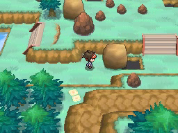 Justo al llegar a la Ruta 23 verás una casa delante tuya. En ella podrás curar a tus Pokémon hablando con la chica de la imagen. Antes de atravesar el río, ve hacia abajo para conseguir una Esc. Corazón. Tras eso, continúa por la parte izquierda, donde encontrarás unos pocos entrenadores.