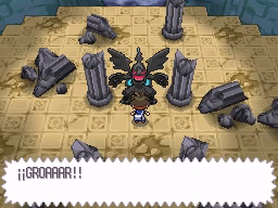 Continúa y llegarás a una zona con muchos saltos. En la imagen sale vacía, pero la primera vez que entres encontrarás una Piedra Día y una Proteína en ella. Para seguir simplemente tendrás que ir por la parte inferior. Ahora tan solo tendrás que seguir subiendo escaleras que te llevarán a la siguiente sala. Antes pasar por la última y más larga habrá una Lustresfera, una Diamansfera y una Griseosfera, para Palkia, Dialga y Giratina, respectivamente.