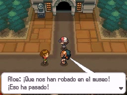 Tras derrotar a Aloe, unos cuantos reclutas del Equipo Plasma entrarán en el museo y robarán uno de los huesos. Al salir, te encontrarás con Camus, otro líder de gimnasio, quien querrá recuperar el fósil. Cuando se vaya, aparecerán Cheren y Bel, quien te entregará el Zahorí. Ahora, cura a tus Pokémon y sal por la parte izquierda de la ciudad.