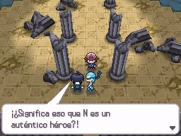 Derrota uno por uno a los reclutas y tendrías vía libre hacia lo alto de la torre, en donde verás a N, junto a Reshiram (Pokémon Negro) o a Zekrom (Pokémon Blanco). Tras eso, te dirá que debes buscar al otro legendario, y se marchará volando sobre su legendario.