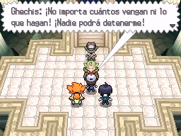 Tras derrotar a N, Ghechis se enfadará y contará la verdadera historia de su plan malvado y de cómo usaba a N como marioneta. Ghechis se enfrentará ahora contra tí con su equipo de 6 Pokémon, más fuertes que los de N. Cuando le derrotes, verá que su plan ha fracasado.