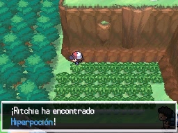 En la ruta verás también una caravana, pero no tiene importancia. Bajo el puente observarás una zona de hierba, a la cual podrás acceder cuando uno de tus Pokémon haya aprendido Cascada. En ella podrás conseguir un Protector. Sigue ahora hacia la derecha y llegarás al Puente Villa.