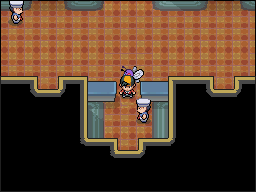 Ahora, puedes ir por los camarotes a combatir a los entrenadores que hay en ellos, pues en casi todos los camarotes te encontrarás un combate. Cuando termines, ve al piso de abajo y te encontrarás con un marinero bloqueando el paso. Habla con él, y te dirá que no te dejará pasar si su compañero no vuelve. Vuelve a los camarotes, y busca el de la tercera imagen. Habla con el marinero que está descansando, que también te retará a un combate, y luego se marchará. Ahora, el marinero de antes ya no te bloqueará el paso.