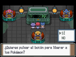 Tras ganar a Helio, te dará la Master Ball, la cual dirá que no necesita. Tras eso, se marchará. Ahora, dirígete hacia el pasillo que hay a la derecha de la sala. Al final del camino, te encontrarás en una sala donde estarán los tres Pokémon de los lagos: Mesprit, Uxie y Azelf. Para rescatarlos, enfréntate a Saturno.