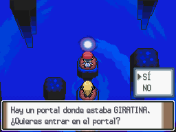 Cuando hayas terminado con Giratina, aparecerá Helio de nuevo, pero luego se irá. Delante de tí verás un portal donde estaba Giratina. Sígue por él y conseguirás salir del Mundo Inverso.