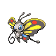 Beautifly tiene una boca enorme en espiral que parece una aguja y le resulta muy útil para recolectar polen. Este Pokémon va revoloteando de flor en flor para recogerlo.