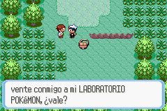 Al dirigirte hacia arriba oirás un grito de auxilio del Profesor Abedul, al cual le estará persiguiendo un Poochyena. Ve hacia el maletín y elige a uno de los tres Pokémon (Torchic, Treecko y Mudkip) con cuidado, ya que éste será tu Pokémon inicial. Tras elegirlo, combatirás contra Poochyena, aunque sólo estará en el Nivel 2, y luego el Profesor te llevará a su Laboratorio.