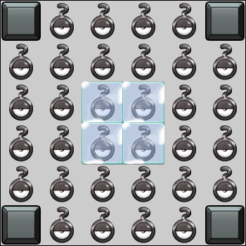Interferencia 1 Al comenzar la fase, elige una acción: -Rellena las filas 1 y 2 con [Teddiursa,nada,Teddiursa,nada,Teddiursa,nada,nada,Teddiursa,nada,Teddiursa,nada,Teddiursa] Repite cada 1 turno.