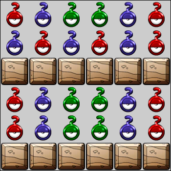 Interferencia 1 Al comenzar la fase, elige una acción: -Rellena las filas 1 y 2 con [nada,Irrompible,nada,Piedra,nada,Irrompible,nada,Irrompible,nada,Piedra,nada,Irrompible] -Rellena las filas 5 y 6 con [Irrompible,nada,Piedra,nada,Irrompible,nada,Irrompible,nada,Piedra,nada,Irrompible,nada] Repite cada 2 turnos.