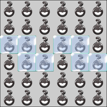 Interferencia 1 Tras 1 turno, elige una accion: -Rellena el bloque 3x4 que comienza en 4:2 con [Metal,Metal,Metal,Metal,Metal,Goomy,Metal,Metal,Zygarde (50% Forme),Metal,Metal,Metal] Tras 1 vez, cambia de interferencia. Repite cada 1 turno.