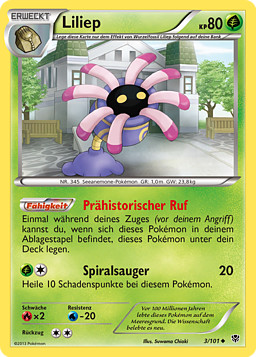 Mira las 7 últimas cartas de tu baraja. Puedes enseñar a un Lileep que encuentres entre ellas y ponerlo en tu Banca. Pon el resto de cartas de nuevo en tu baraja y barájalas todas.
