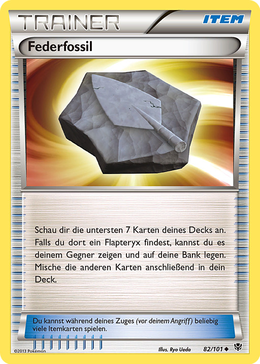 Mira las 7 últimas cartas de tu baraja. Puedes enseñar a un Archen que encuentres entre ellas y ponerlo en tu Banca. Pon el resto de cartas de nuevo en tu baraja y barájalas todas.