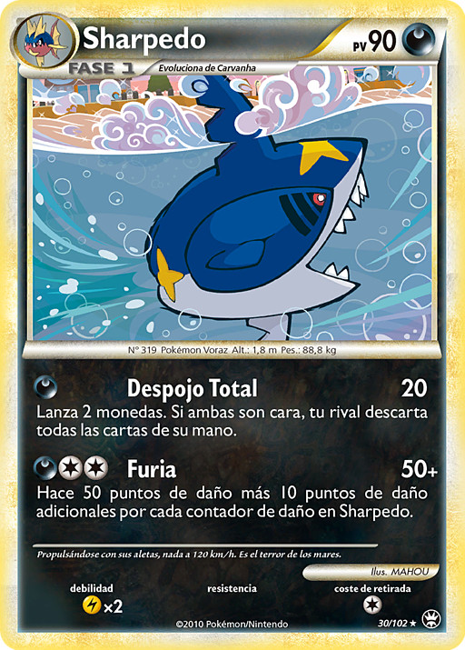 Si este Pokémon es tu Pokémon Activo y resulta dañado por el ataque de un rival (incluso si este Pokémon queda Fuera de Combate), pon 2 contadores de daños en el Pokémon Atacante.