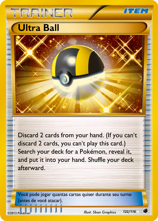 Descarta 2 cartas de tu mano. (Si no puedes descartar 2 cartas, no puedes jugar esta carta.) Busca en tu baraja un Pokémon, enséñalo y ponlo en tu mano. Baraja las cartas de tu baraja después.