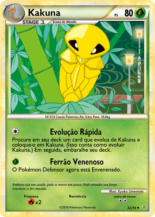 Busca en tu mazo una carta que evolucione de Kakuna y ponla sobre Kakuna. (Esto cuenta como evolucionar a Kakuna.) Baraja tu mazo después.