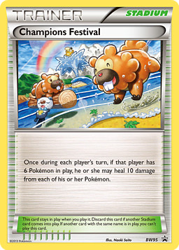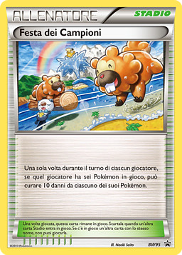 Una vez durante el turno de cada jugador, si ese jugador tiene a 6 Pokémon en juego, puede curar 10 puntos de daño a cada uno de sus Pokémon.
