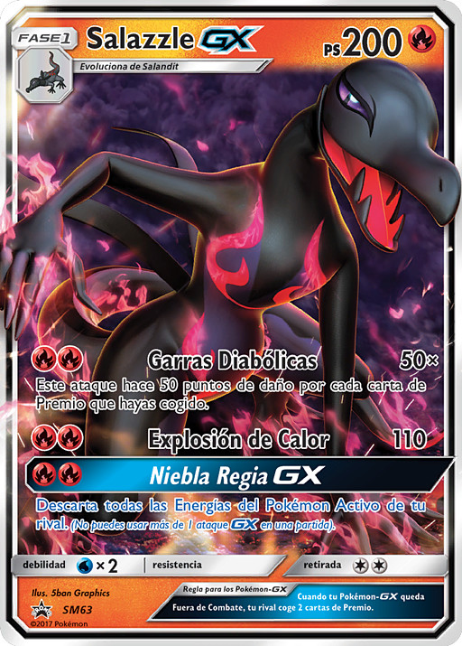 Pokémon en Fase 1 (200 HP) -Garras Diabólicas 50x -Explosión de Calor 110 -Niebla Regia GX