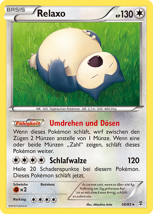 Si este Pokémon está Dormido, lanza 2 monedas en vez de 1 entre turnos. Si sale cruz en alguna de ellas, este Pokémon está todavía Dormido.