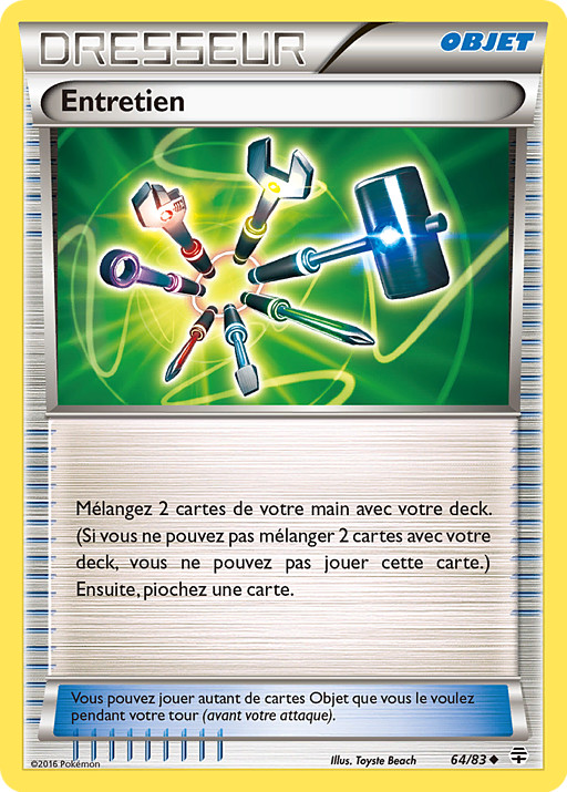 Pon 2 cartas de tu mano en tu baraja y barájalas todas. (Si no puedes poner 2 cartas, no puedes jugar esta carta). Después, roba 1 carta.