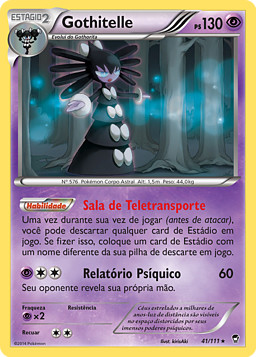 Una vez durante tu turno (antes de tu ataque), puedes descartar cualquier carta de Estadio en juego. Si lo haces, pon en juego 1 carta de Estadio con un nombre diferente de tu pila de descartes.