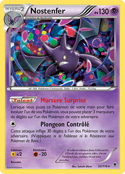 Cuando juegues este Pokémon de tu mano para hacer evolucionar a 1 de tus Pokémon, puedes poner 3 contadores de daño en 1 de los Pokémon de tu rival.