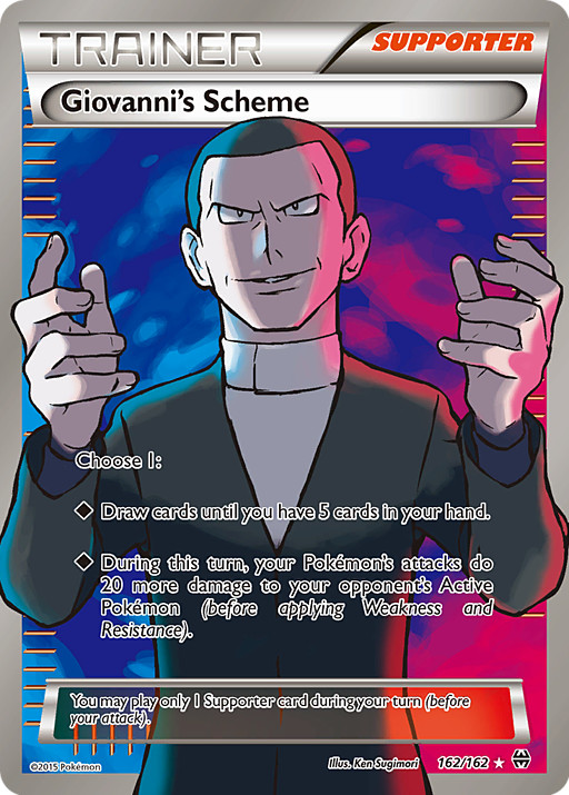 Elige 1 opción:• Roba cartas hasta que tengas 5 cartas en tu mano.• Durante este turno, los ataques de tus Pokémon hacen 20 puntos de daño más al Pokémon Activo de tu rival (antes de aplicar Debilidad y Resistencia).